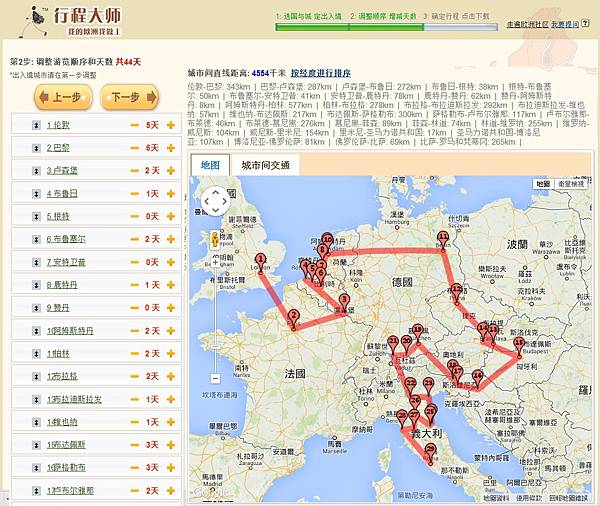 6-走遍歐洲(網站),有行程大師的功能,可以協助排定旅程,並且粗估花費的時間及費用,可以參考。行程更可以輸出為WORD檔案供編輯之用!