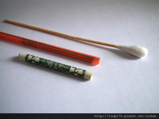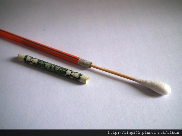 旅遊藏錢技巧-財不露白/吸管偽裝每個人的行李多少有些雜物,吸管也是其中之一!利用棉花棒將紙鈔捲塞入! 紙捲要緊實才好動作!抽出棉棒就完成了!行李箱或背包放幾根吸管,誰會注意到?喝完飲料請吸管不要亂丟喔!否則錢就飛了!