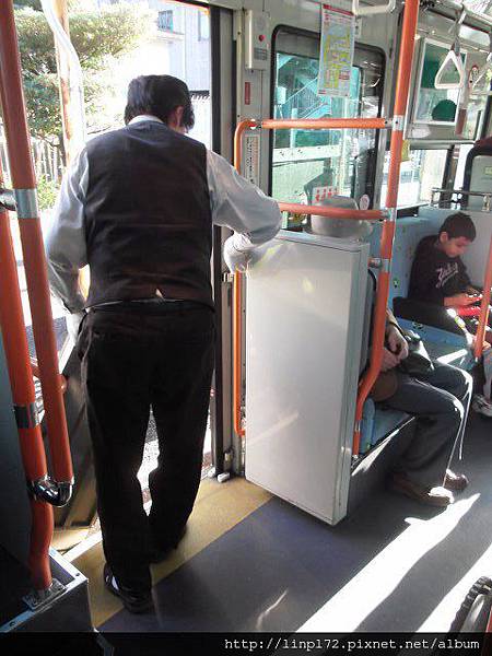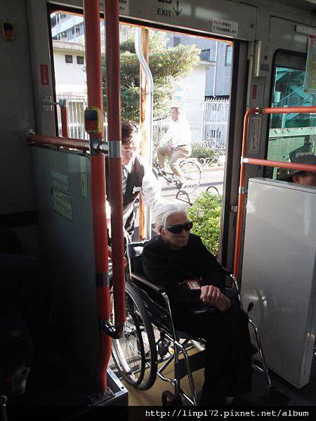 推進來固定好,司機才回駕駛座開車喔...日本真是銀髮族的天堂啦!